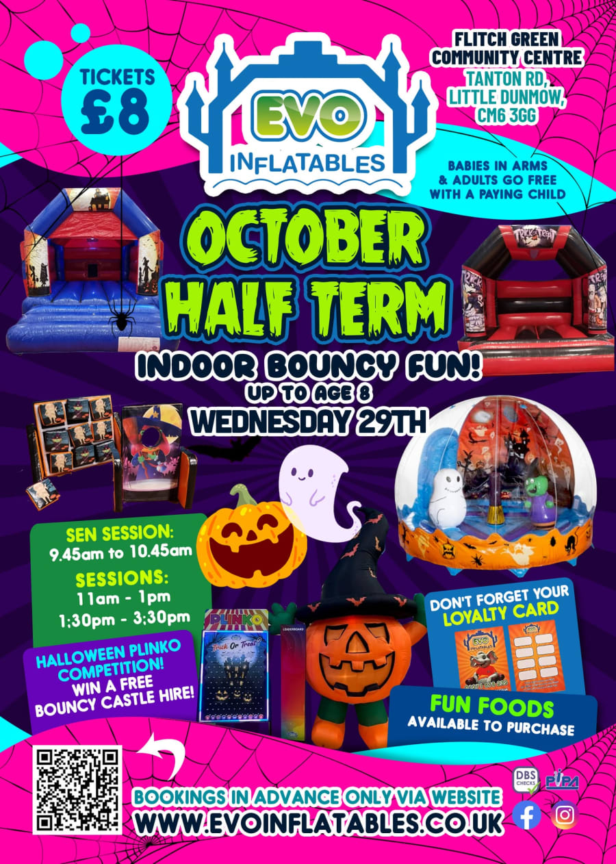 Wednesday, 29th October in Dunmow at the Flitch Green Community Hall - 2 sessions available plus a SEN Only Session too