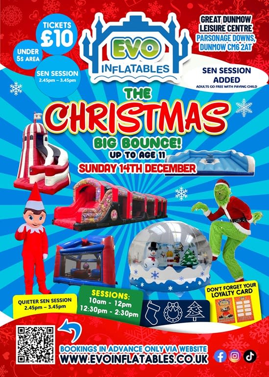 This indoor festive extravaganza is ideal for parties, family fun or just a pre-Christmas treat to bounce off some of that xmas-energy! Book early — sessions fill quick like a snowball rolling downhill. Whether you’re local to Dunmow or popping over from elsewhere in Essex, bring festive socks (no gripper socks please) and big smiles. ππ