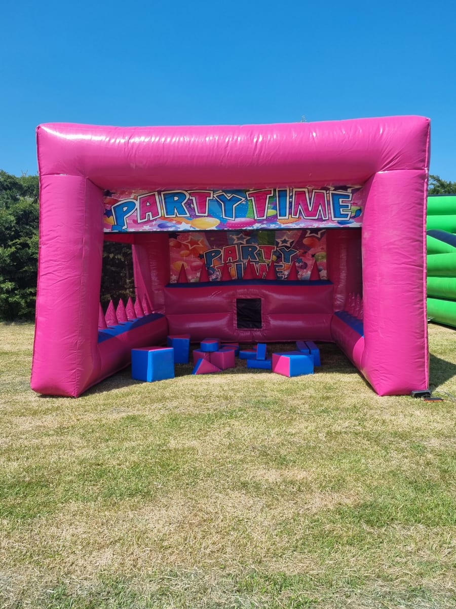 The Soft Play Tent surround with air jugglers is perfect for sunny or showery days to protect your children while they play outside with our soft play hire. If you want the soft play in the picture this is our mini set of pink and ice blue and you can see this here.