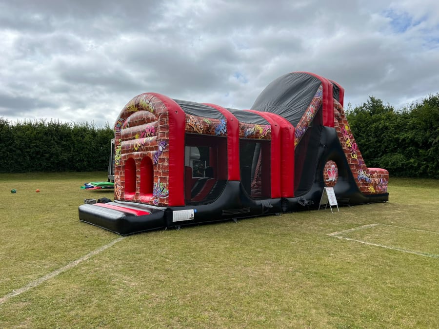 Inflatable obstacle courses are extremely popular for wedding parties, leavers parties, corporate events and a range of other functions. Our Mega Assault Course has a numerous array of obstacles within the inflatable such as tunnels, barrels, criss cross, dangly balls and bish bash.